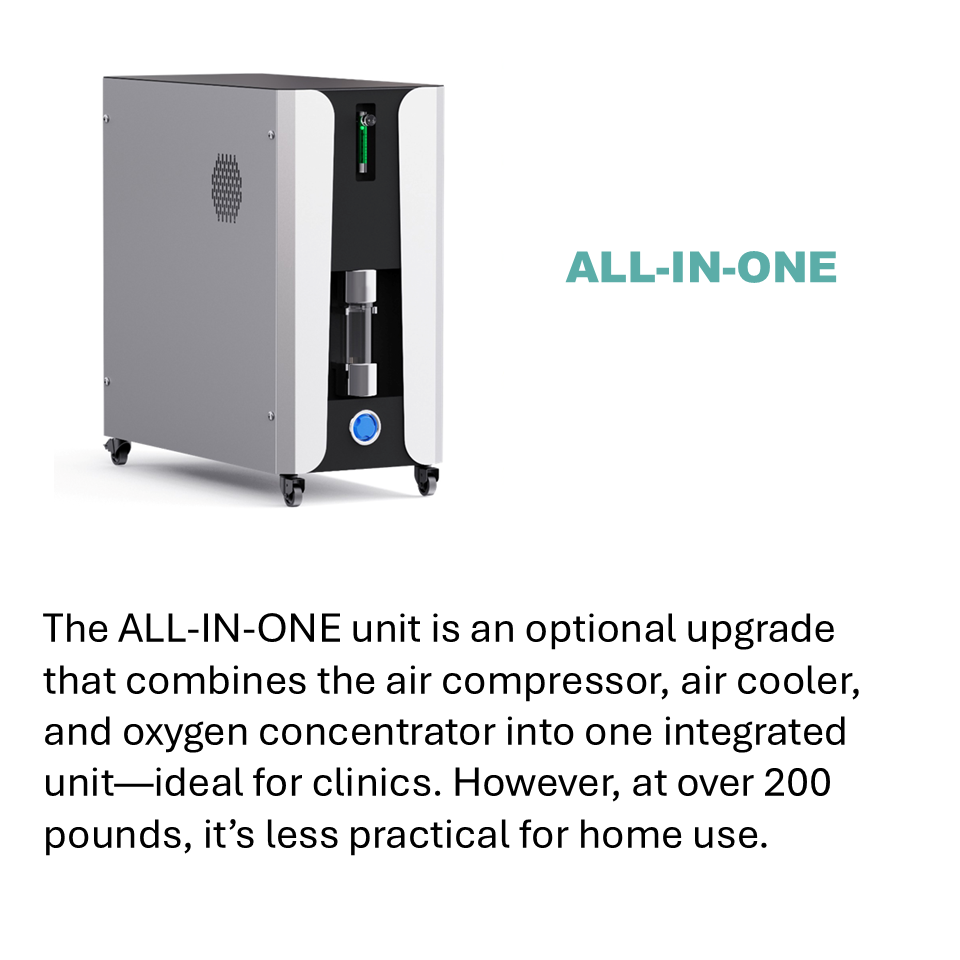 Adjustable pressure settings, with air compressor, oxygen concentrator, and memory foam mattress. ($8,499 - $9,700)